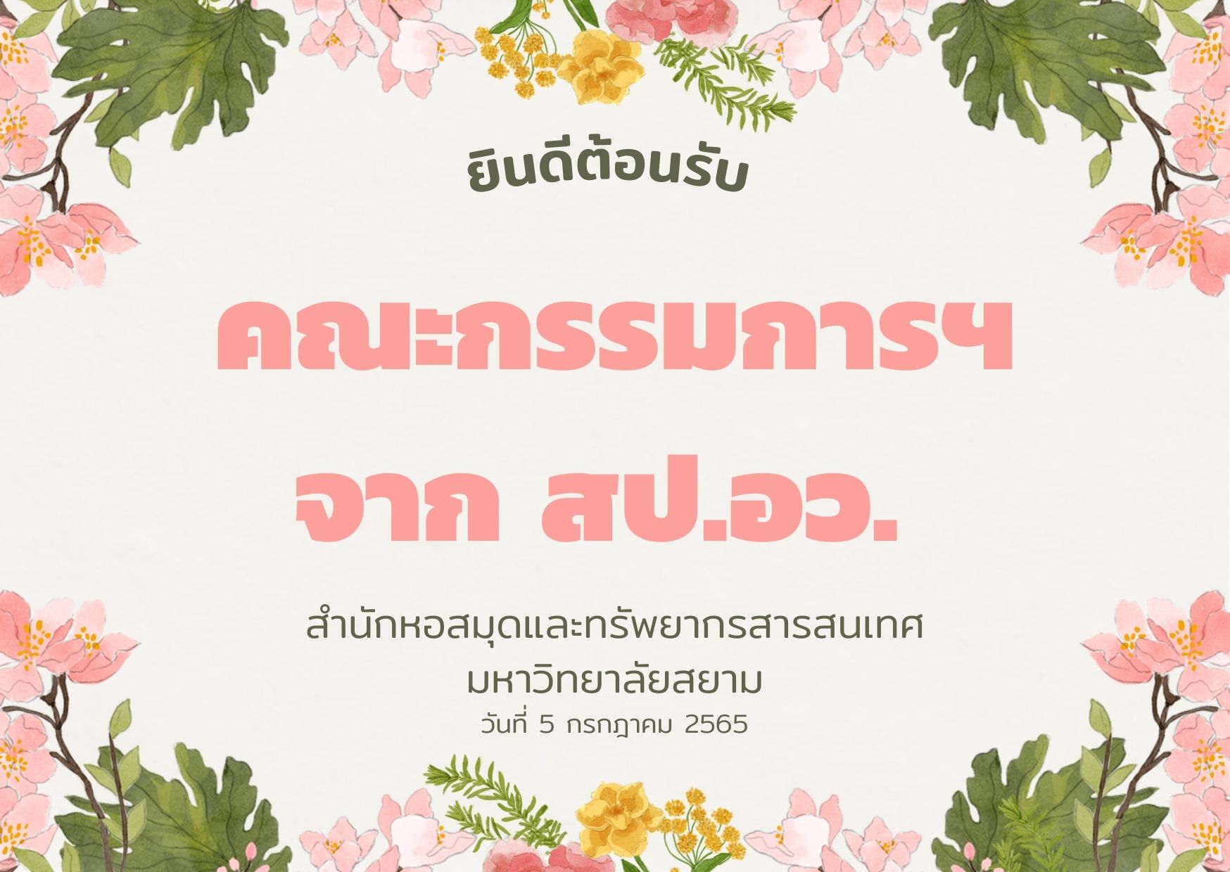 คณะกรรมการฯ จาก สป.อว. ตรวจเยี่ยมการดำเนินการตรวจสอบคุณภาพการจัดการศึกษา ของมหาวิทยาลัยสยาม เพื่อให้การรับรองวิทยฐานะสถาบันอุดมศึกษาเอกชน วันอังคารที่ 5 กรกฎาคม 2565 เวลา 08.30 – 17.00 น.