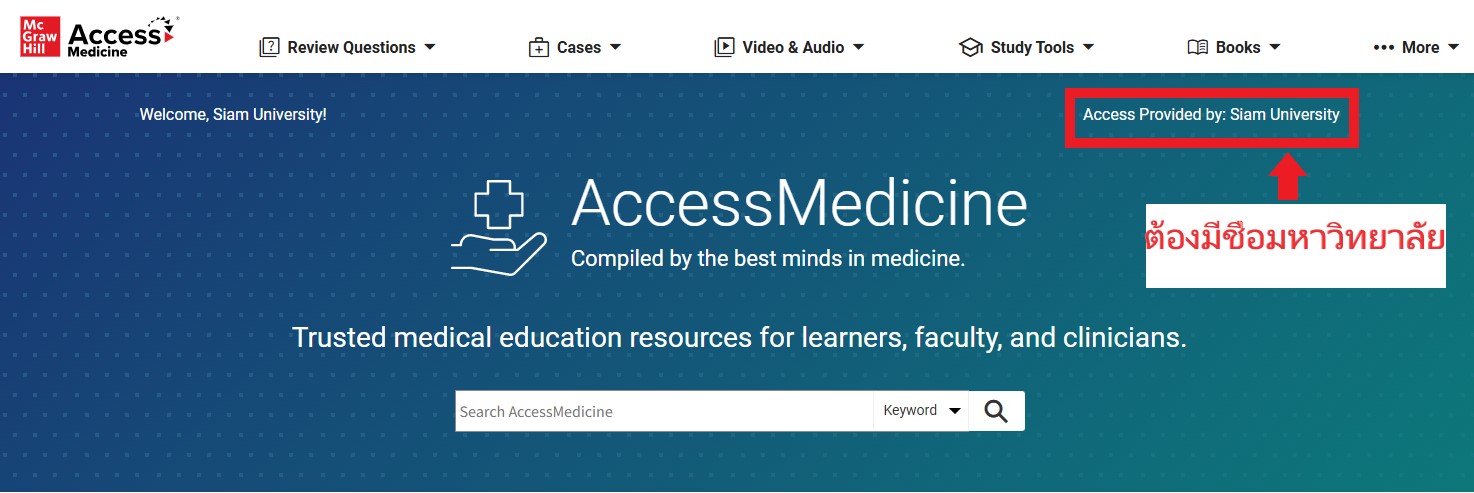 ข่าวดี สำหรับนักศึกษา คณาจารย์ และบุคลากร ของ ม.สยาม เท่านั้น! ที่มีสิทธิ์ใช้ฐานข้อมูล McGraw Hill – AccessMedicine นี้!!!