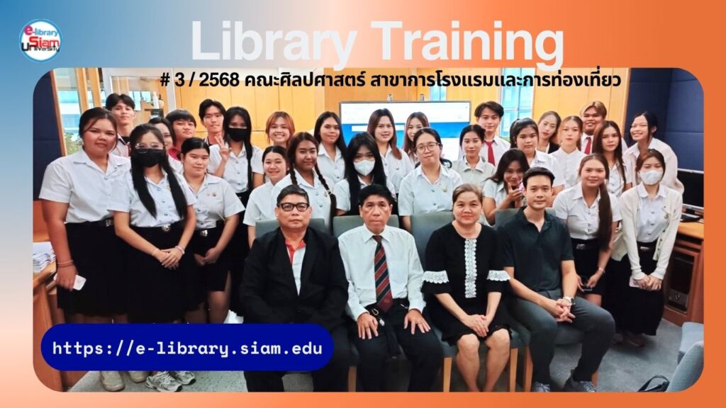 โครงการ “ส่งเสริมการรู้สารสนเทศและการเรียนรู้ตลอดชีวิต ปีการศึกษา 2568″ (โครงการ ตอบสนองยุทธศาสตร์ของมหาวิทยาลัยที่ 2 KPI 6 นักศึกษา/บัณฑิตได้รับการพัฒนาทักษะทางดิจิทัลเพิ่มมากขึ้น) สำนักหอสมุดและทรัพยากรสารสนเทศ ม.สยาม ได้จัดโครงการ “ส่งเสริมการรู้สารสนเทศและการเรียนรู้ตลอดชีวิต ปีการศึกษา 2568″ โดยมีวัตถุประสงค์ เพื่อเป็นการพัฒนาทักษะของนักศึกษา มหาวิทยาลัยสยาม ในการสืบค้นและเข้าถึงทรัพยากรสารสนเทศอิเล็กทรอนิกส์ การใช้ฐานข้อมูลวิชาการออนไลน์ที่สำนักฯได้จัดซื้อ และการใช้ Generative AI เพื่อใช้ประกอบการเรียนการสอนและการวิจัย อีกทั้งเป็นการกระตุ้นการใช้ทรัพยากรสารสนเทศอย่างคุ้มค่าก่อให้เกิดประโยชน์สูงสุด โครงการนี้ ได้มีการจัดกิจกรรม อบรม: “การใช้ห้องสมุดดิจิทัล ONLINE DATABASE & Generative AI” ให้กับนักศึกษาเป็นประจำอย่างต่อเนื่องตลอดปีการศึกษา โดยมีการจัดกิจกรรมดังนี้ ครั้งที่ 1/2568 วันพฤหัสบดีที่ 21 ตุลาคม 2568 เวลา 10.00 – 12.00 น. ณ ห้องดิจิทัล สำนักหอสมุดฯ วิทยากรโดย ดร.คมเดช บุญประเสริฐ และ พี่พรรณี จิวพุทธิธรรม ได้จัดกิจกรรมดังกล่าวให้กับนักศึกษาคณะทันตแพทยศาสตร์ ครั้งที่ 2/2568 […]