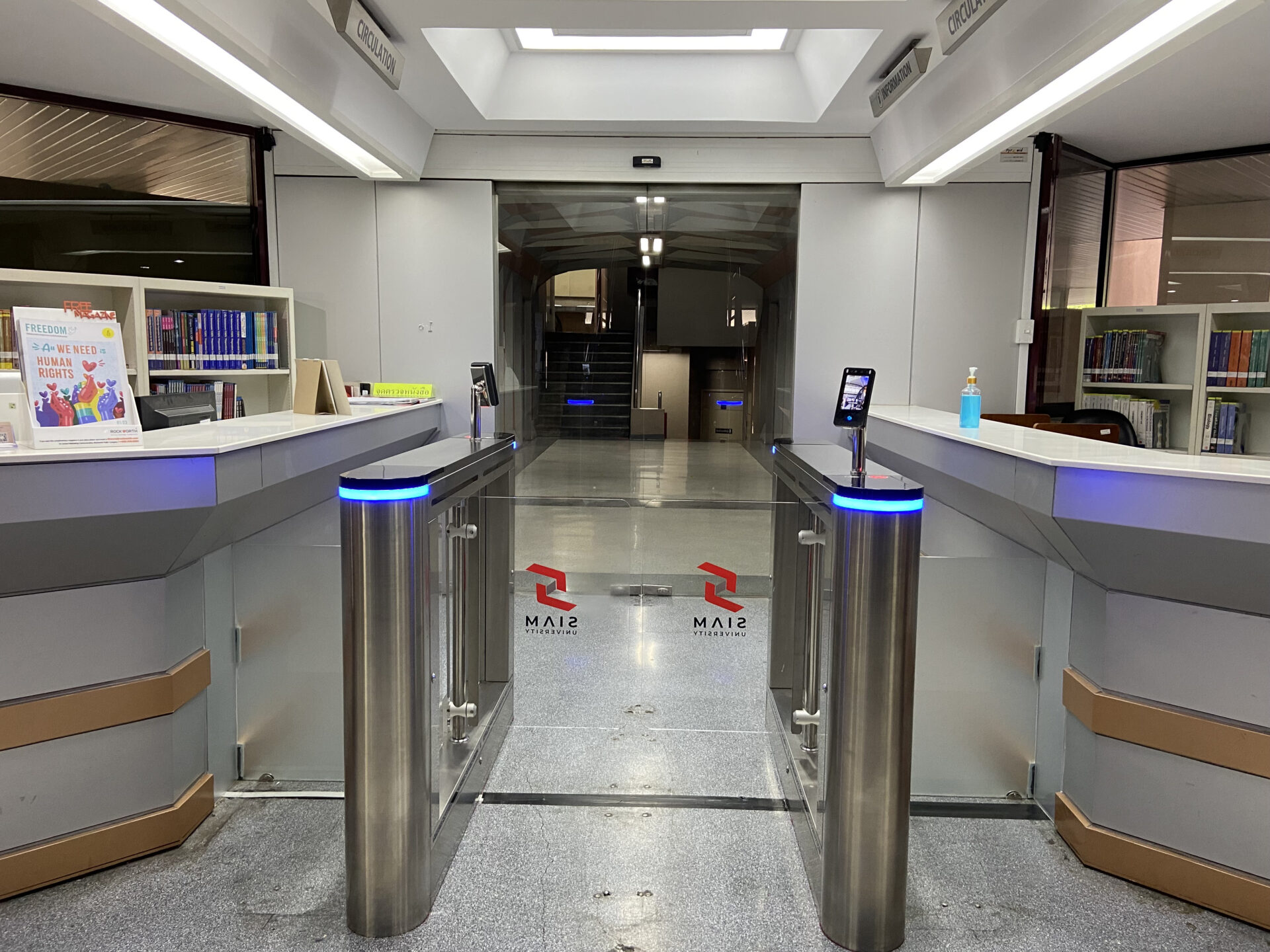 เนื่องจากประตูระบบเดิมที่ใช้มานานชำรุด สำนักหอสมุดฯ ได้เปลี่ยนระบบประตูเข้า-ออก ใหม่ที่ทันสมัยยิ่งขึ้น ซึ่งผู้ใช้บริการสามารถสแกนหน้าผ่านหน้ากากอนามัยได้เลยทั้งประตูทางเข้าและทางออก ทางสำนักหอสมุดฯ ได้เปิดระบบเต็มรูปแบบแล้วตั้งแต่วันที่ 7 ก.ค. 66 นะคะ ลองมาเข้าใช้บริการที่สำนักหอสมุดฯ กันได้ เราเปิดให้บริการทุกวันค่ะ (ยกเว้นวันหยุดนักขัตฤกษ์)