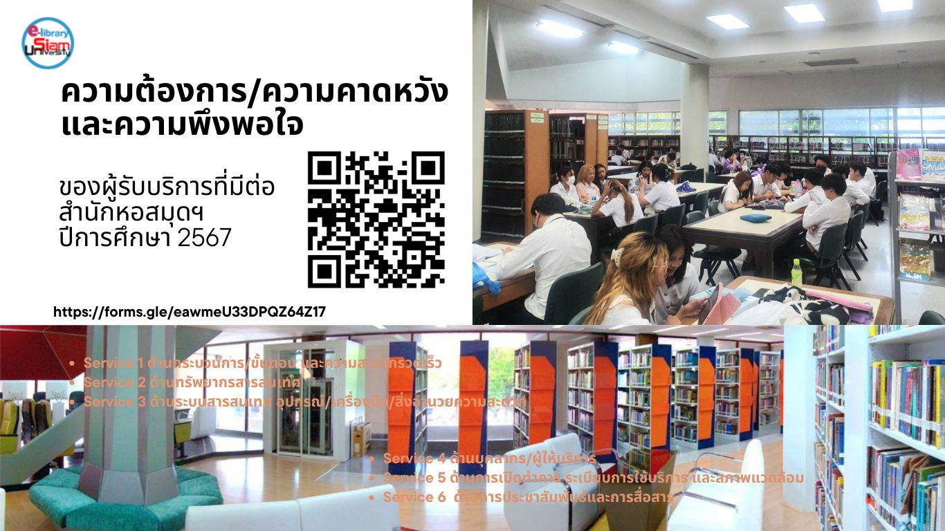 แบบสอบถามความต้องการและความพึงพอใจของผู้รับบริการสำนักหอสมุดฯ ประจำปีการศึกษา 2567 https://forms.gle/eawmeU33DPQZ64Z17