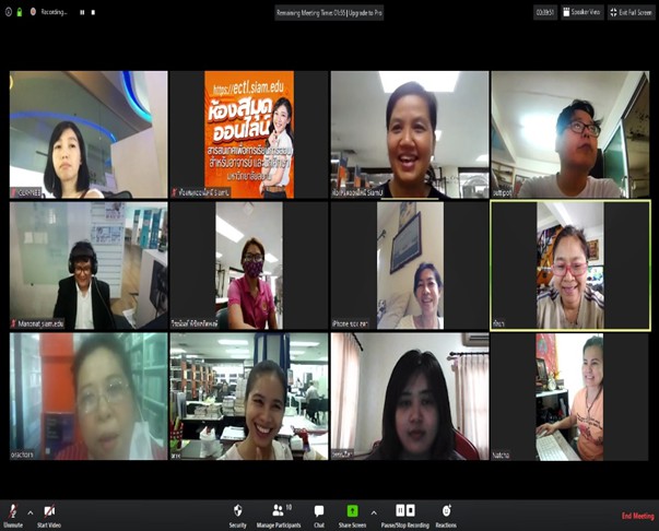 - การประชุมคณะอนุกรรมการพัฒนาระบบและเครือข่ายห้องสมุดสถาบันอุดมศึกษาเอกชน (อพส.) ชุดที่ 17 ครั้งที่ 4/2563 วันอังคารที่ 9 มีนาคม 2564 ผ่านทางออนไลน์ด้วย ZOOM จัดโดยมหาวิทยาลัยธุรกิจบัณฑิตย์ บุคลากรที่เข้าร่วม 1. อาจารย์สุธน สุภาวงศ์ 2.อาจารย์คมเดช บุญประเสริฐ 3.นางพรรณี จิวพุทธิธรรม การเผยแพร่องค์ความรู้/การนำความรู้ไปใช้ประโยชน์ ที่ https://e-library.siam.edu/thaipul-4-2563/