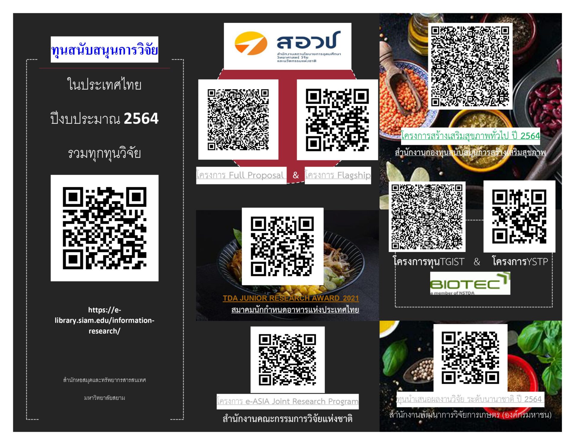 รายละเอียดทุนสนับสนุนการวิจัย ปีงบประมาณ 2564