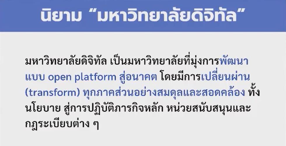 ศึกษาองค์ความรู้เพิ่มเติมจากคอร์สออนไลน์ฟรี เรื่อง โครงการพัฒนาแพลตฟอร์มเพื่อการเข้าสู่มหาวิทยาลัยดิจิทัล: Toward to Digital University: Building the Digital University Platform ที่ http://du-knit.org/courses/toward-to-digital-university/