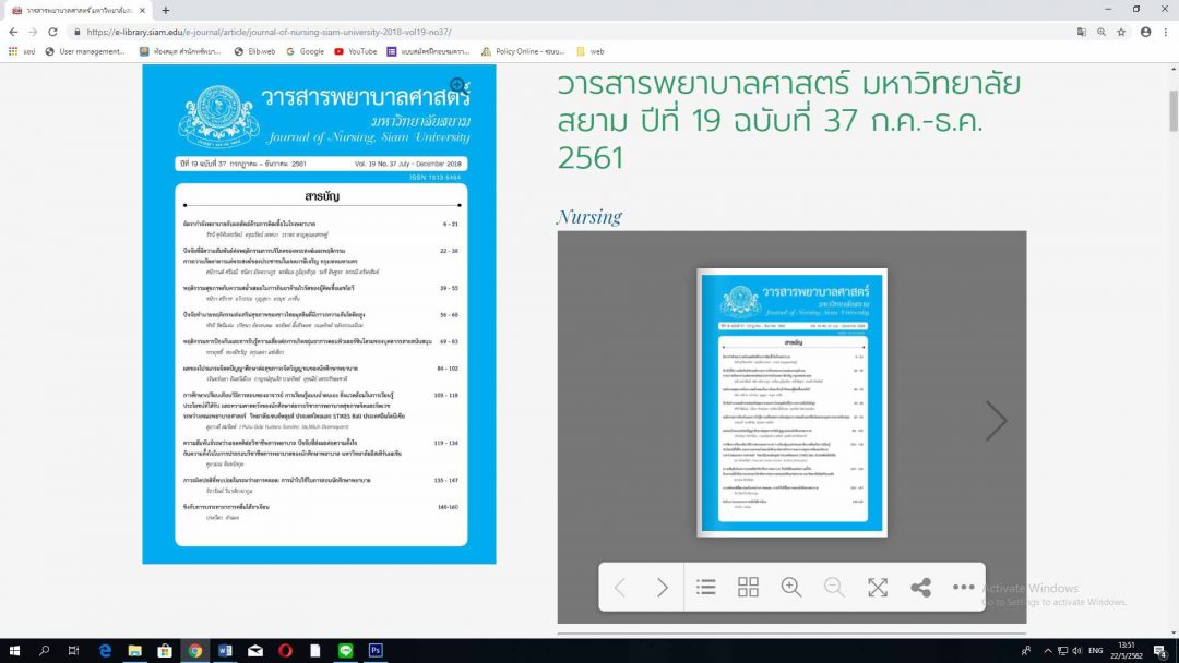 - ตัวอย่างผลงาน: https://e-library.siam.edu/e-journal/article/journal-of-nursing-siam-university-2018-vol19-no37/