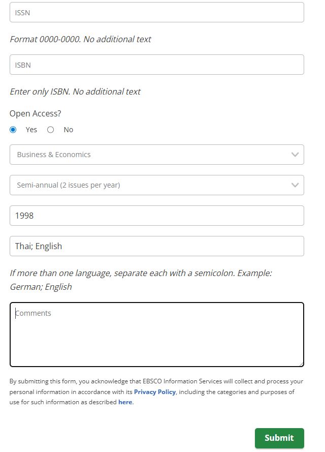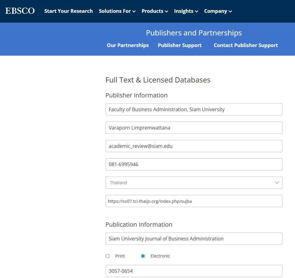 โดยโครงการนี้จะเป็นการส่งเสริมและสร้างเครือข่ายความร่วมมือทางวิชาการที่กว้างขวางมากขึ้น ซึ่งจะนำไปสู่การพัฒนางานวิจัยที่มีคุณภาพสูงในอนาคต และเป็นประโยชน์ต่อการจัดอันดับมหาวิทยาลัย (University Ranking) ของสถาบันต่างๆ สมัครเข้าร่วมโครงการได้ที่ https://about.ebsco.com/publishers-partnerships/full-text-licensed-databases-contact-form