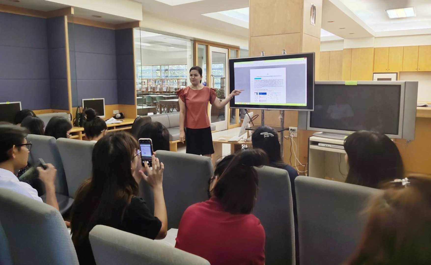 กิจกรรมอบรมเชิงปฏิบัติการ การสืบค้นฐานข้อมูลวิชาการออนไลน์และการยืมระหว่างห้องสมุด