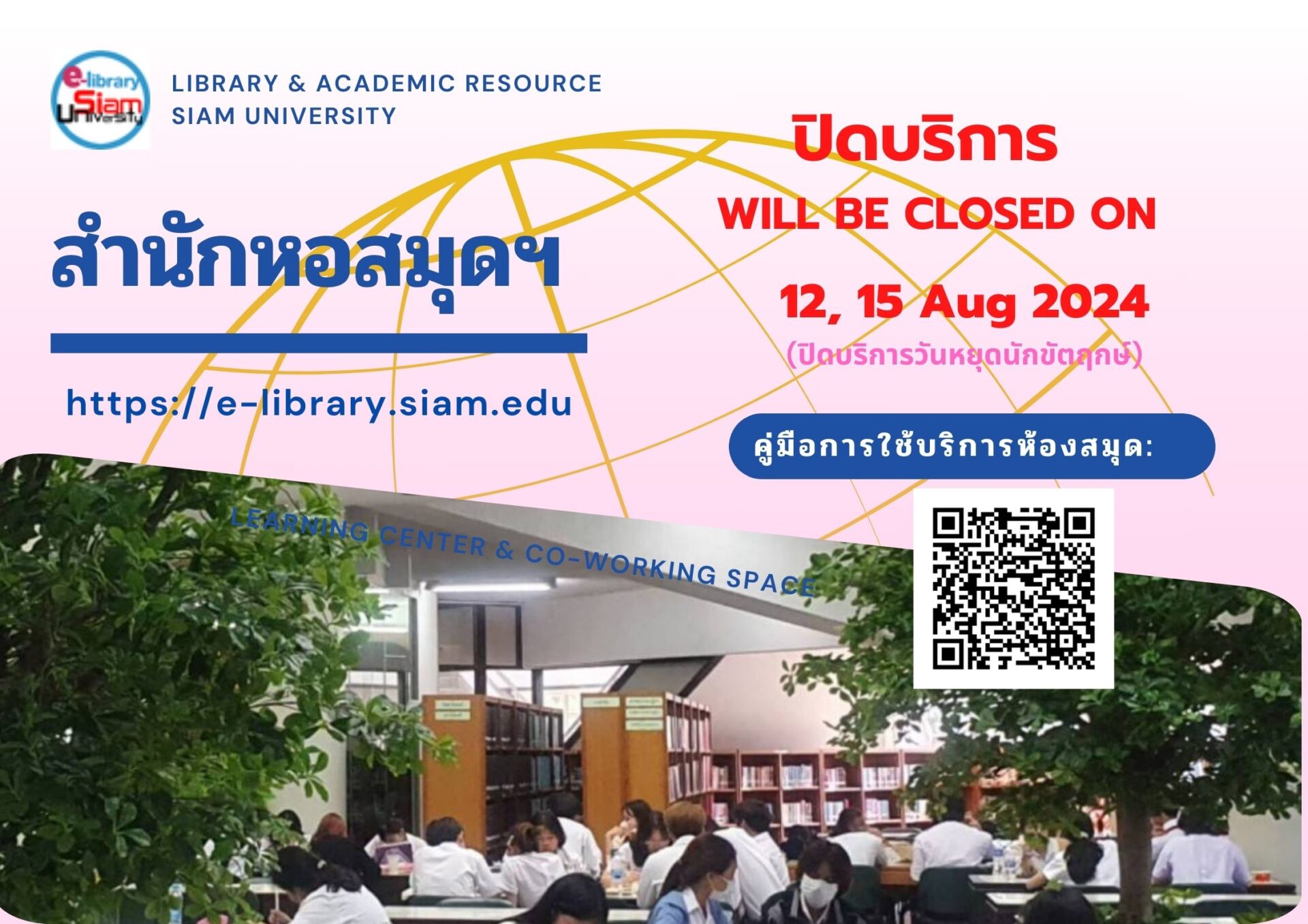 >> ติดตามข้อมูลข่าวสารห้องสมุดและทรัพยากรสารสนเทศ ที่เว็บไซต์ https://e-library.siam.edu/