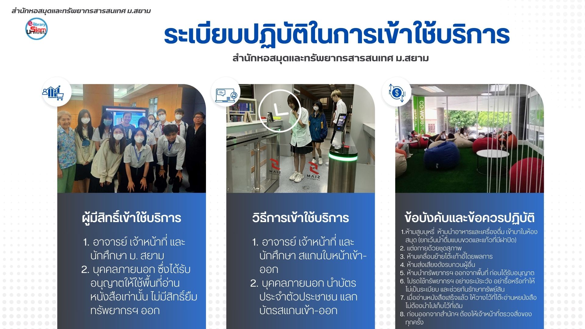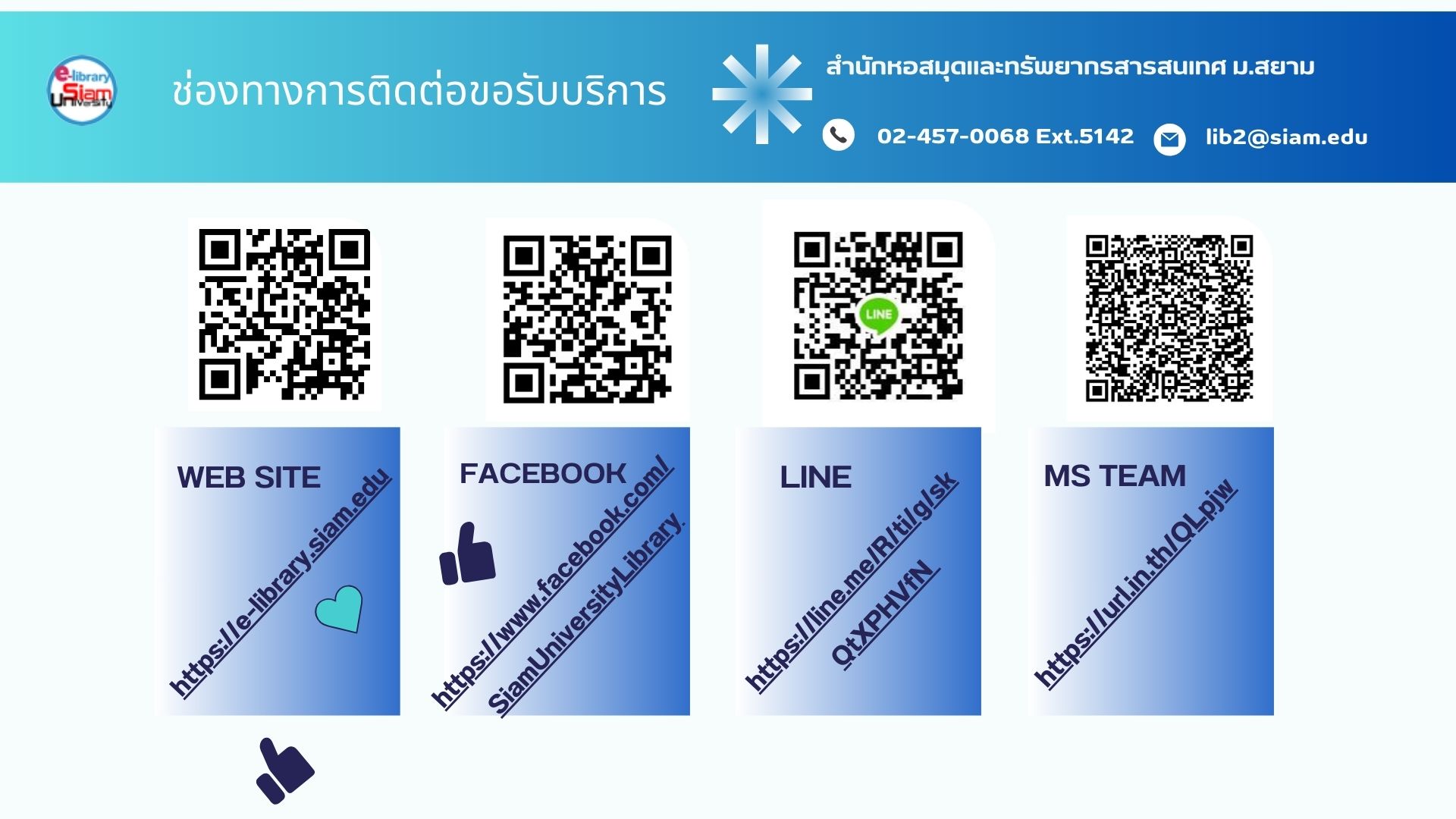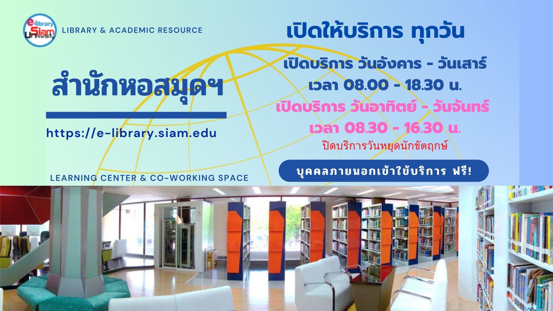 >> ติดตามข้อมูลข่าวสารห้องสมุดและทรัพยากรสารสนเทศ ที่เว็บไซต์ https://e-library.siam.edu/