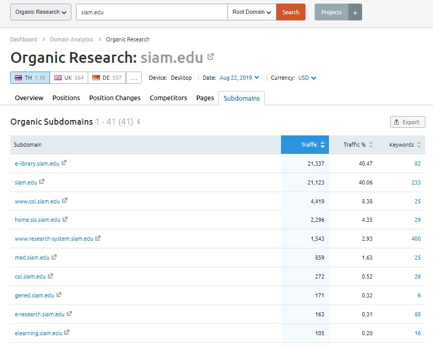 ผลการเผยแพร่ข้อมูลข่าวสารให้เป็น Digital content ผ่านทางเว็บไซต์สำนักฯ ทำให้เว็บไซต์ของสำนักฯ อยู่ในอันดับที่ดีขึ้นอย่างต่อเนื่อง และเมื่อเดือนสิงหาคม 2562 Google Analics ได้จัดอันดับการใช้เว็บไซต์ของมหาวิทยาลัยสยาม ผลปรากฏว่า มีผู้เข้าใช้บริการเป็นอันดับ 1 ของเว็บไซต์ในมหาวิทยาลัยสยาม