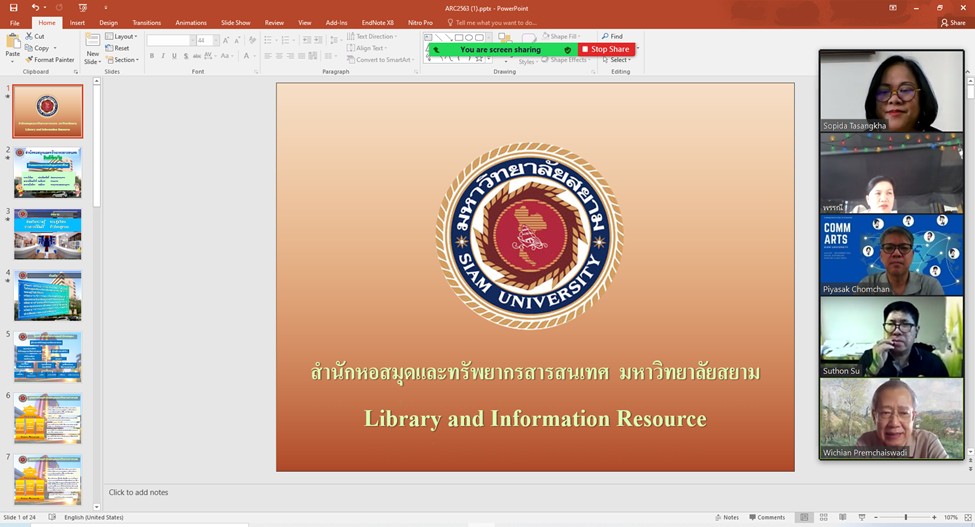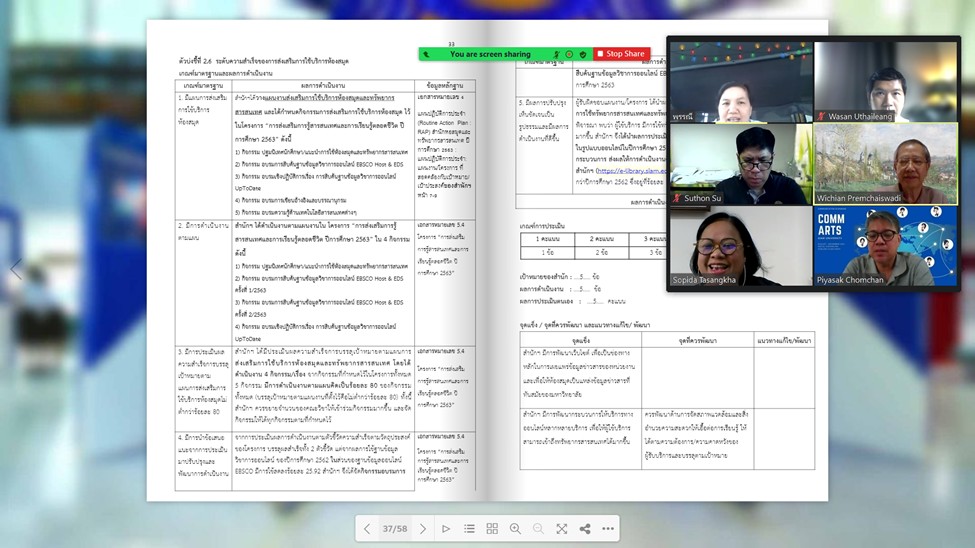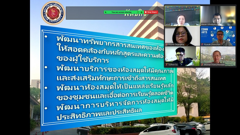 สำนักหอสมุดและทรัพยากรสารสนเทศ มหาวิทยาลัยสยาม รับการตรวจประเมินคุณภาพภายในระดับสำนัก ประจำปีการศึกษา 2563 ในวันพุธที่ 29 ตุลาคม 2564 เวลา 10.00-12.30 น. ผ่านทางโปรแกรมออนไลน์ ZOOM ซึ่งเป็นการตรวจประเมินการดำเนินงานประกันคุณภาพการศึกษาภายในระดับสำนักอย่างต่อเนื่อง เป็นปีที่ 20 โดยคณะกรรมการตรวจประเมินคุณภาพภายในระดับสำนัก จำนวน 3 ท่าน ได้แก่