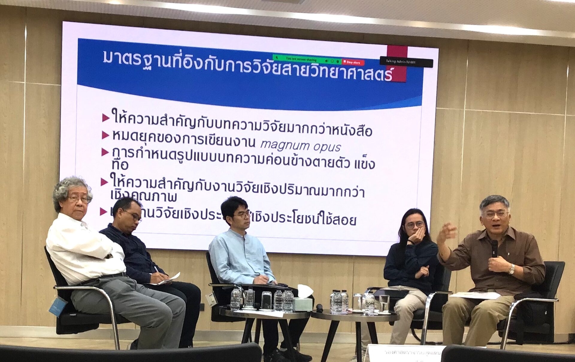 1.หัวข้อสัมมนาวิชาการ “คืนเสรีภาพให้การเผยแพร่ผลงานวิชาการในประเทศไทย: กรอบและเกณฑ์ที่เป็นไปได้ในการตีพิมพ์ผลงานวิชาการในวารสาร” โดยมีวิทยากรร่วมเสวนา ดังนี้