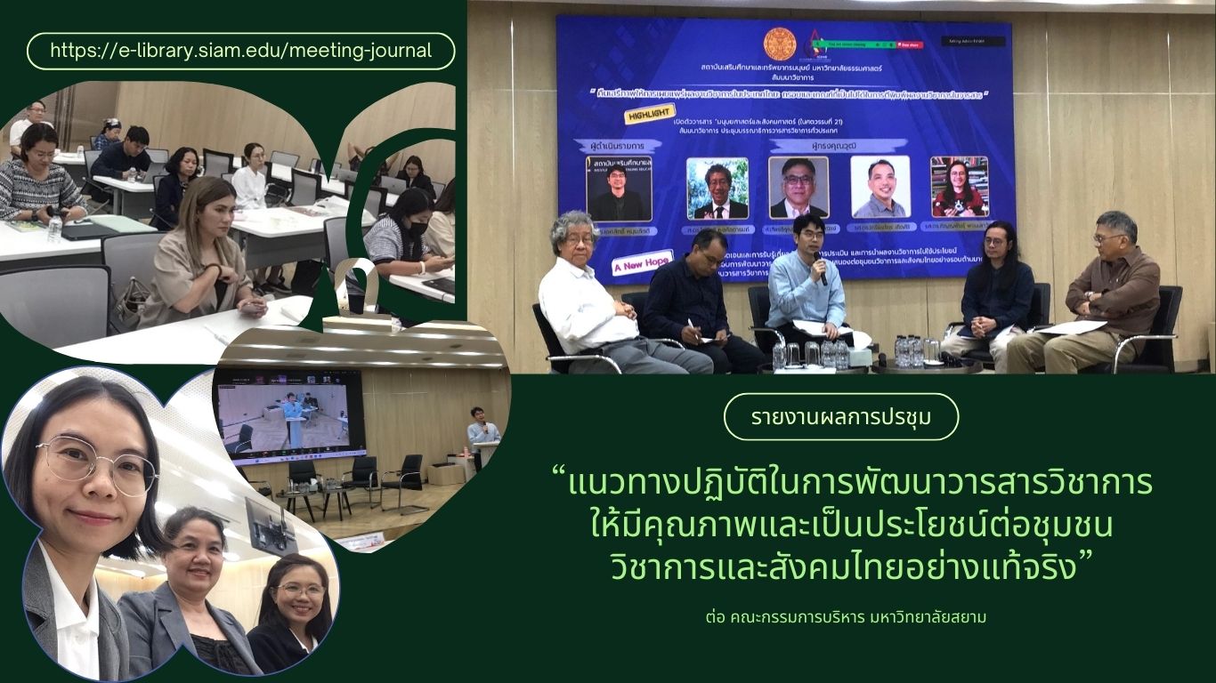 ในการนี้สำนักหอสมุดและทรัพยากรสารสนเทศ ได้พิจารณาจัดส่งบุคลากรเพื่อเป็นตัวแทนเข้าร่วมสัมมนา คือ นางพรรณี จิวพุทธิธรรม โดยมีอาจารย์จากคณะบริหารธุรกิจ เข้าร่วมสัมมนาด้วย จำนวน 2 ท่าน กล่าวคือ อาจารย์วราภรณ์ ลิ้มเปรมวัฒนา และผศ.ดร.สมพร ปานยินดี เนื่องจากบุคลากรทั้ง 3 ท่าน เป็นผู้ที่เกี่ยวข้องกับการการพัฒนาคุณภาพวารสารบริหารธุรกิจ มหาวิทยาลัยสยาม