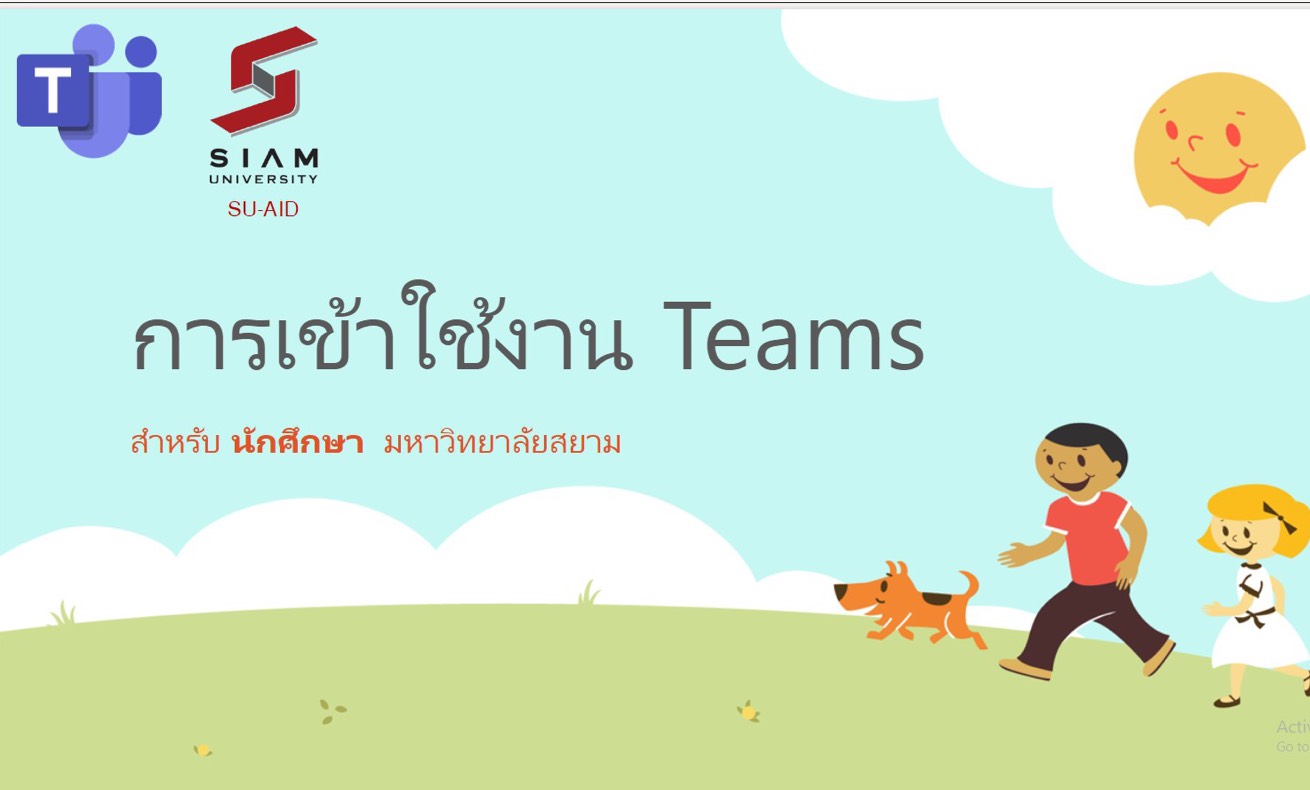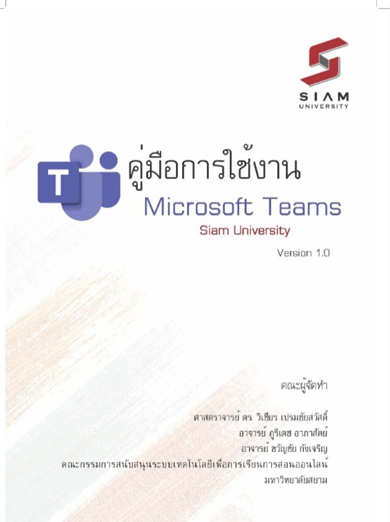 อบรมการใช้ Microsoft Teams มหาวิทยาลัยสยาม ได้จัดซื้อ Microsoft Teams เพื่อใช้เป็นเครื่องมือในการส่งเสริมสนับสนุนเรียนการสอนออนไลน์ ของคณาจารย์และนักศึกษา ดังนั้นจึงได้มีการจัดอบรมขึ้นเมื่อวันที่ 23 เมษายน 2563 และจัดอบรมเป็นระยะๆ (วันที่ 8, 14 พฤษภาคม 2563) ผ่านทาง online Microsoft Teams ซึ่งคณาจารย์และบุคลากรมหาวิทยาลัยสยามได้เข้าร่วมอบรมเป็นจำนวนมาก โดยได้รับการอบรมในหัวข้อความรู้เริ่มตั้งแต่การสร้าง Channel การติตตั้งโปรแกรม สร้างห้องประชุม การเชิญบุคคล การแชร์หน้าจอ ฯ ทั้งนี้ ทีมอาจารย์ผู้ถ่ายทอดความรู้ได้จัดทำคู่มือการใช้งาน Microsoft Teams เพื่อให้ทั้งคณาจารย์และนักศึกษาได้ศึกษาเพื่อนำ Microsoft Teams ไปใช้งานต่อไป