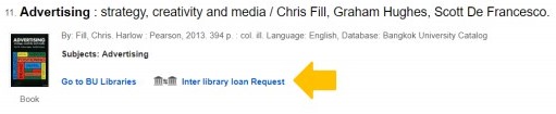 1.4 หากต้องการยืมระหว่างห้องสมุด ให้คลิกที่ Inter library loan Request
