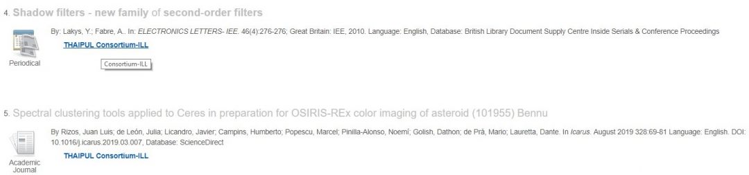 2.1 สำหรับการขอบทความที่มาจากฐานข้อมูลออนไลน์ต่างๆ จะมีเมนูและคลิกที่ชื่อว่า THAIPUL Consortium-ILL