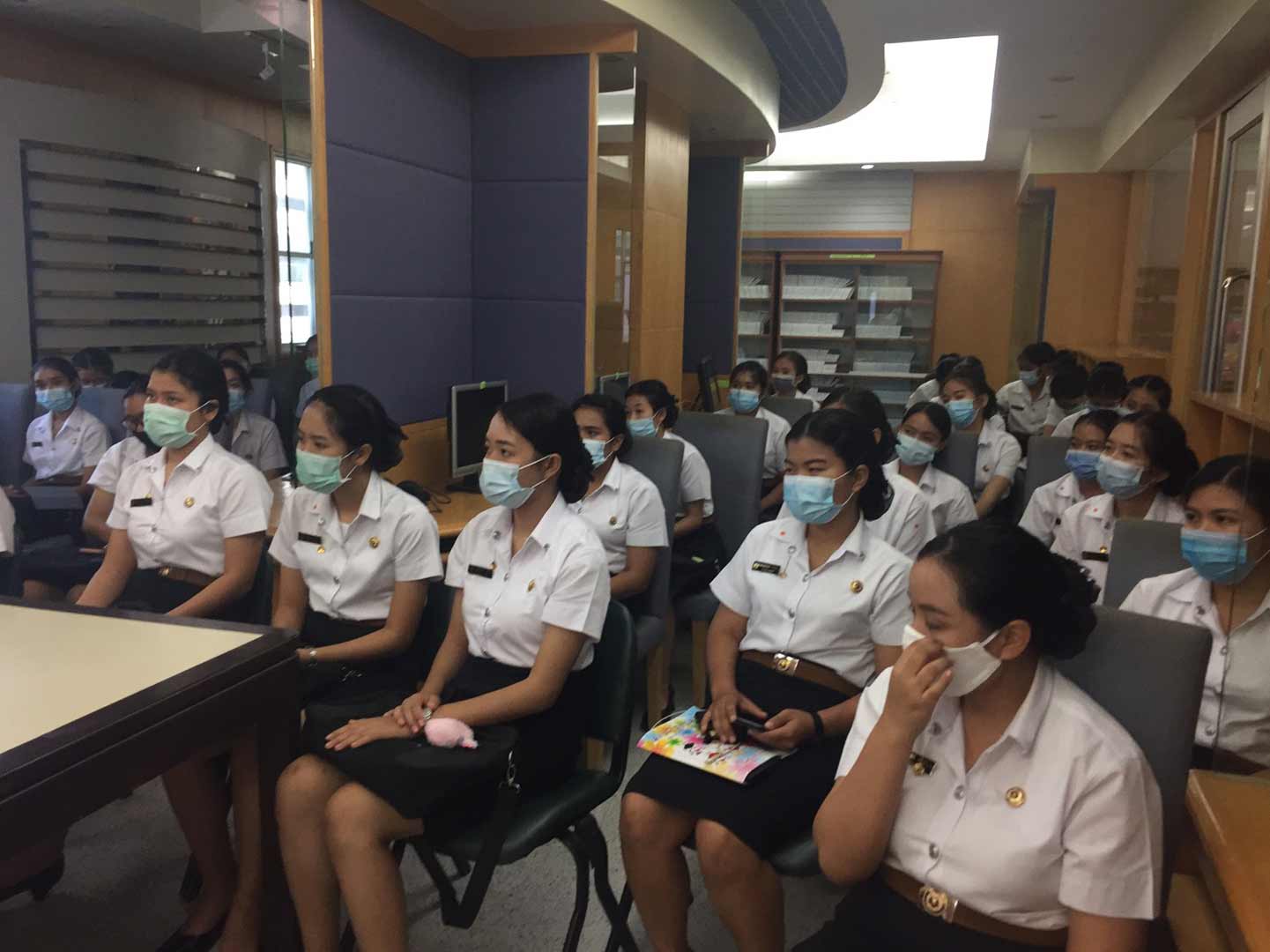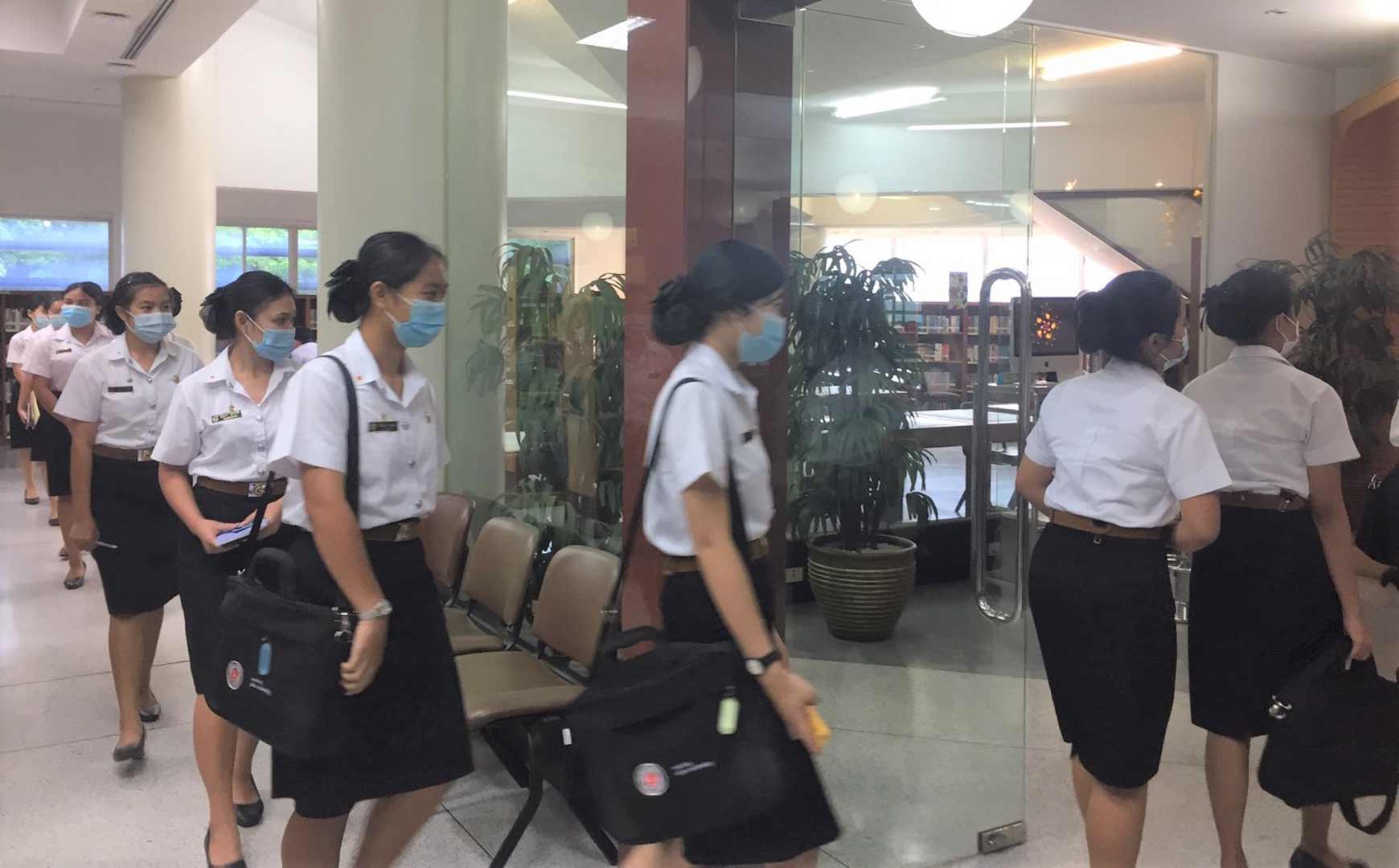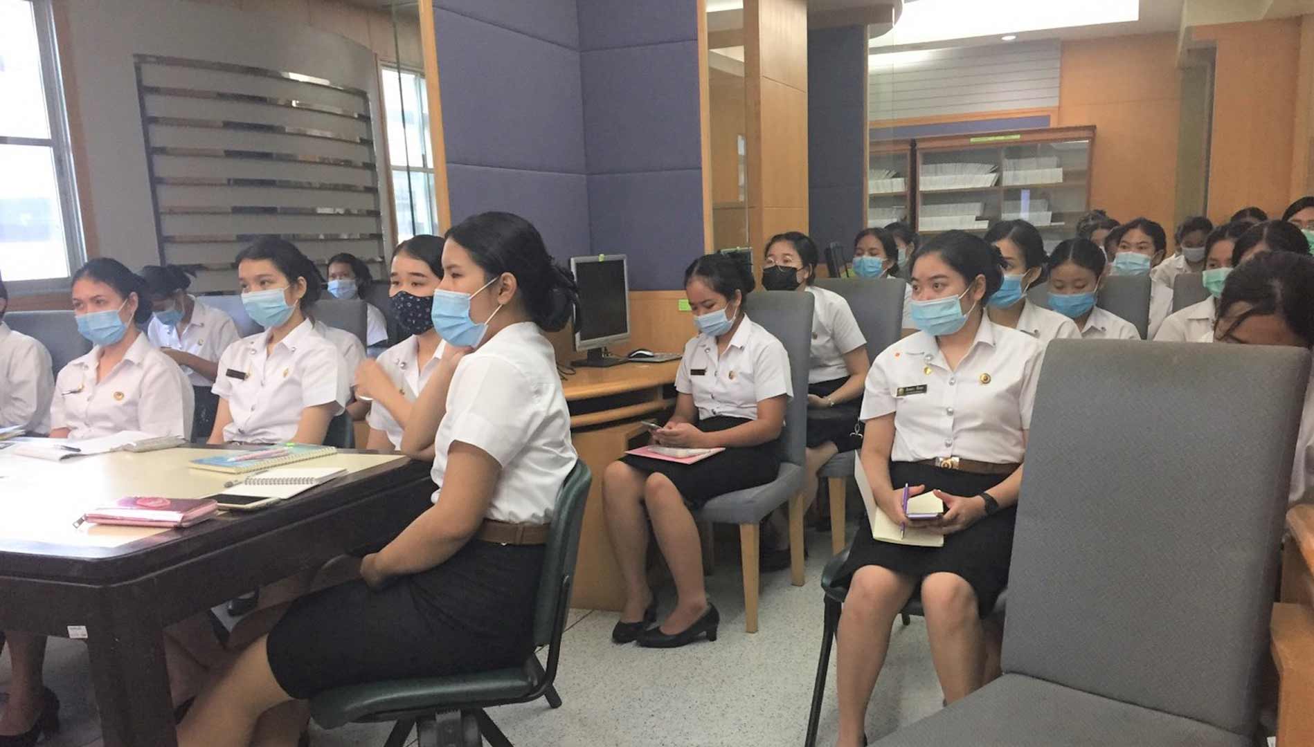 นักศึกษาคณะพยาบาลศาสตร์ ที่เข้ารับการอบรม รอบแรก เวลา 11.00-12.00 น. จำนวน 39 คน