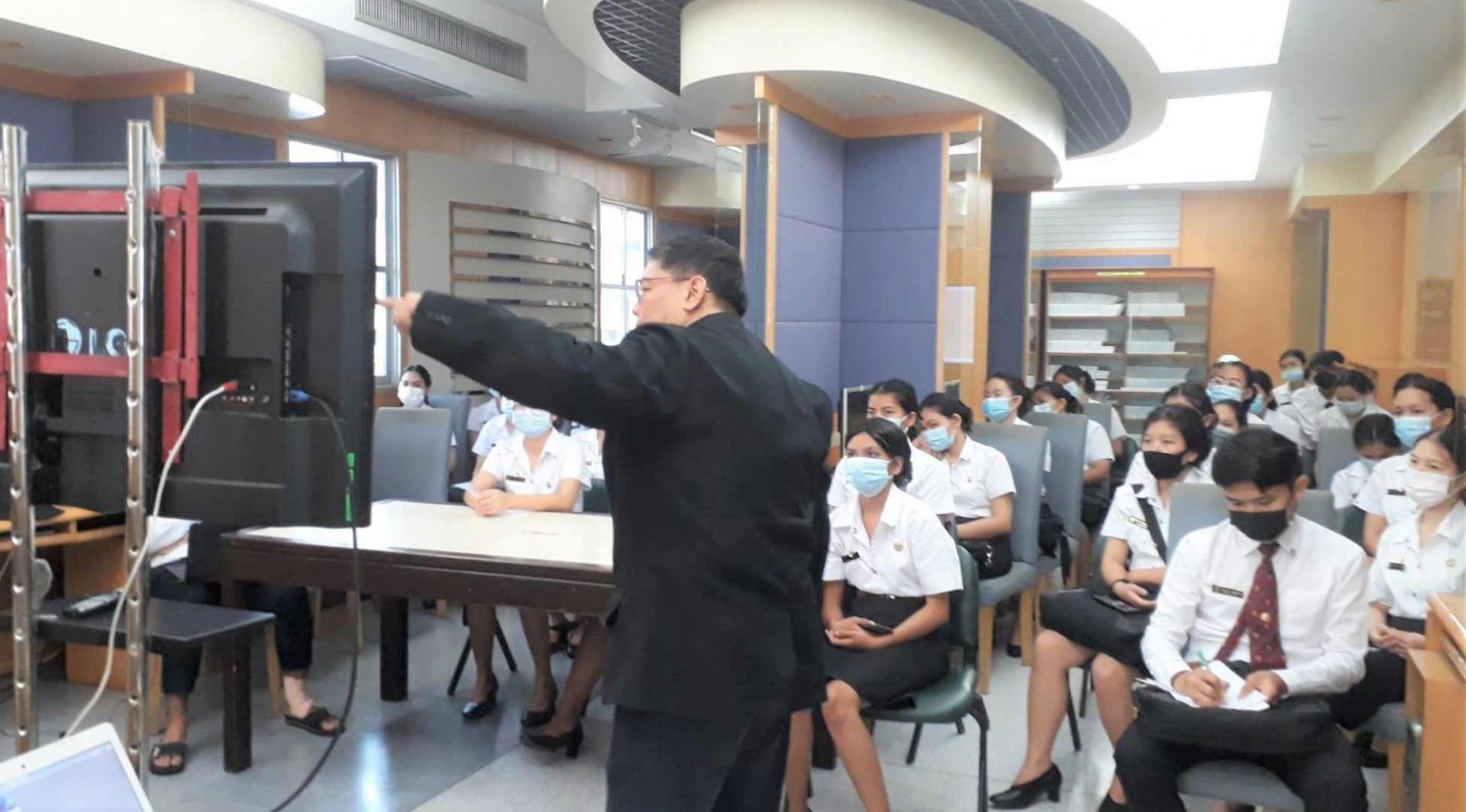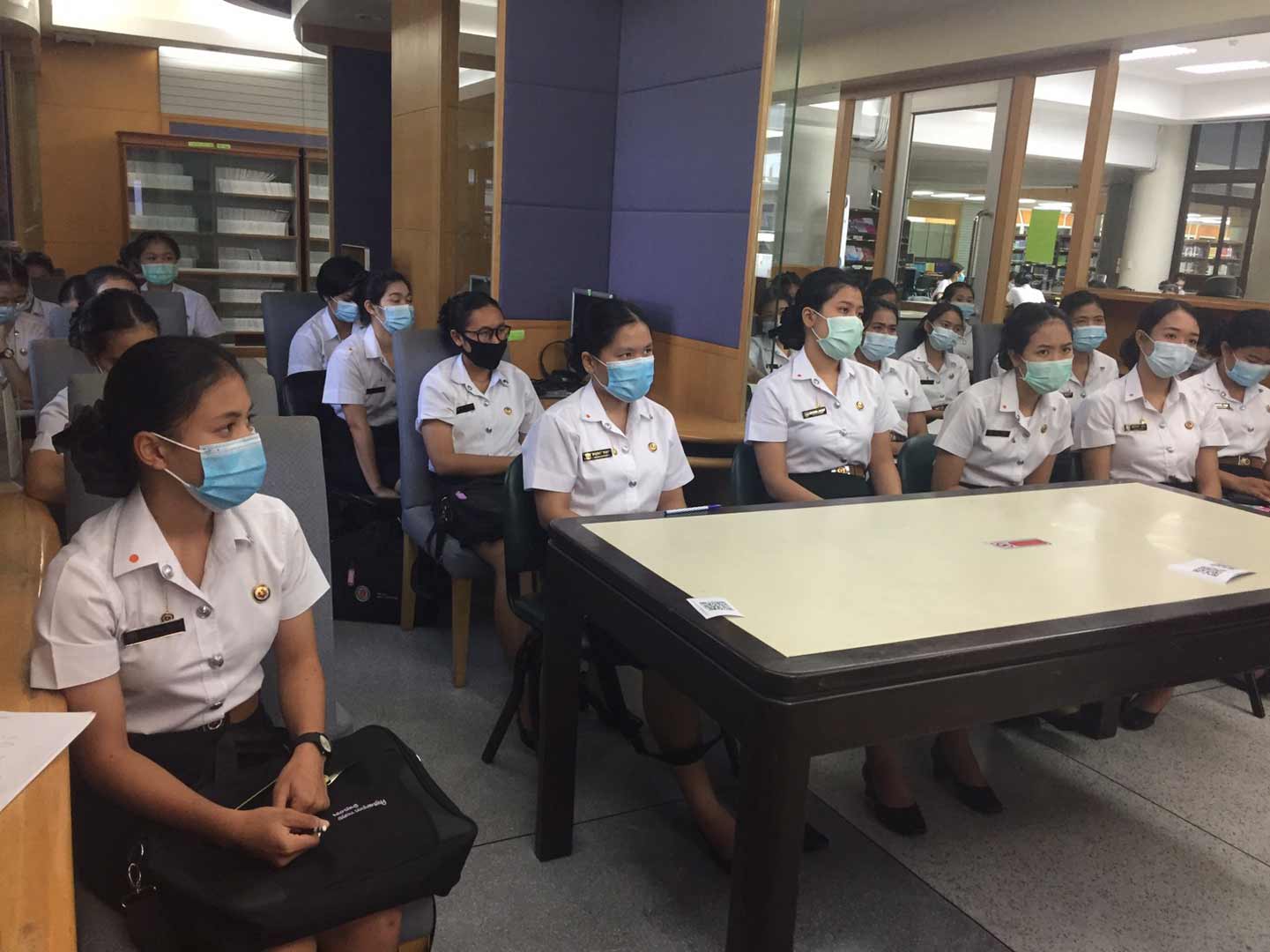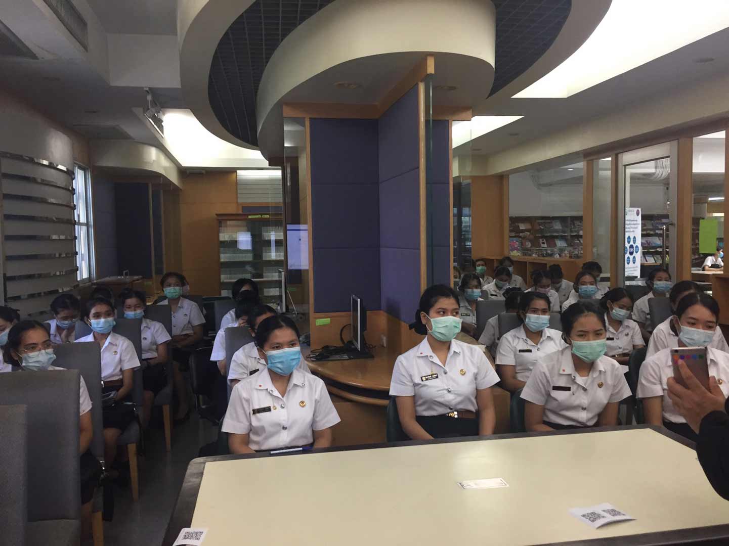 นักศึกษาคณะพยาบาลศาสตร์ ที่เข้ารับการอบรม รอบแรก เวลา 11.00-12.00 น. จำนวน 39 คน