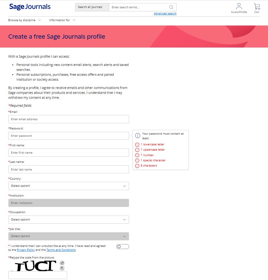 - เข้าไปที่: https://journals.sagepub.com/ Click ที่ Create Profile