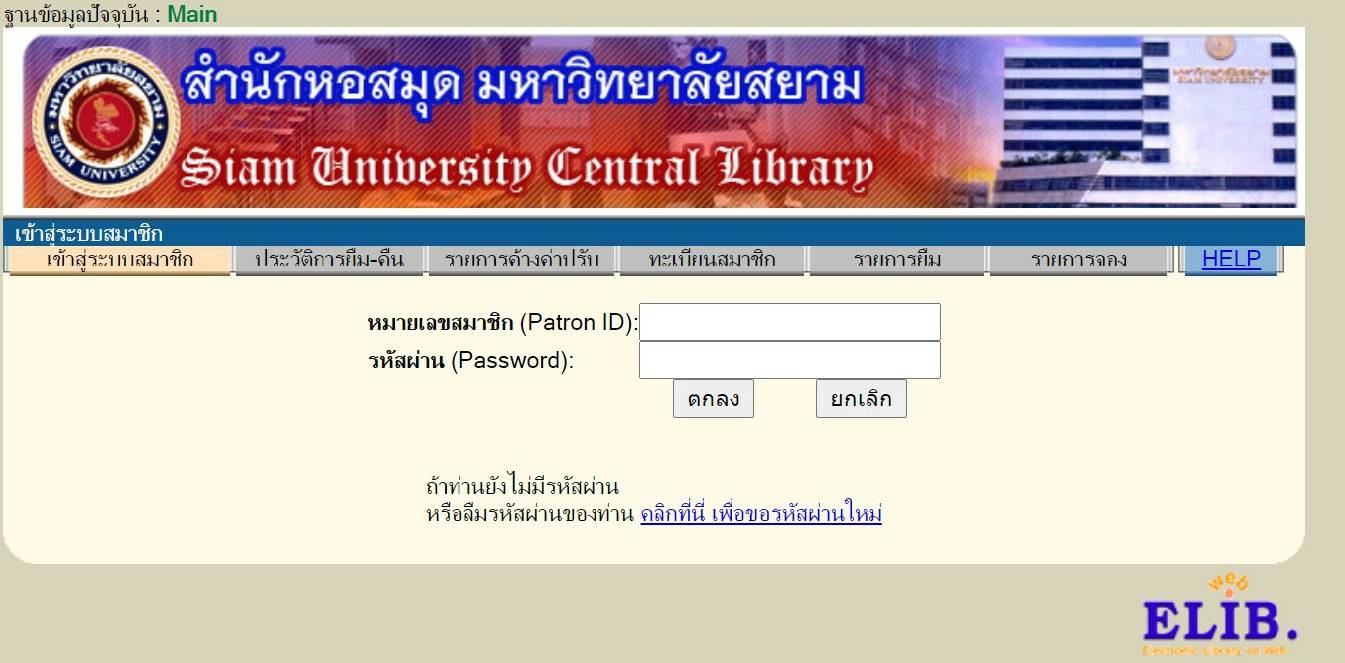 - หมายเลขสมาชิก(Patron ID): = กรอกรหัสนักศึกษา หรือรหัสบุคลากรของมหาวิทยาลัยสยาม