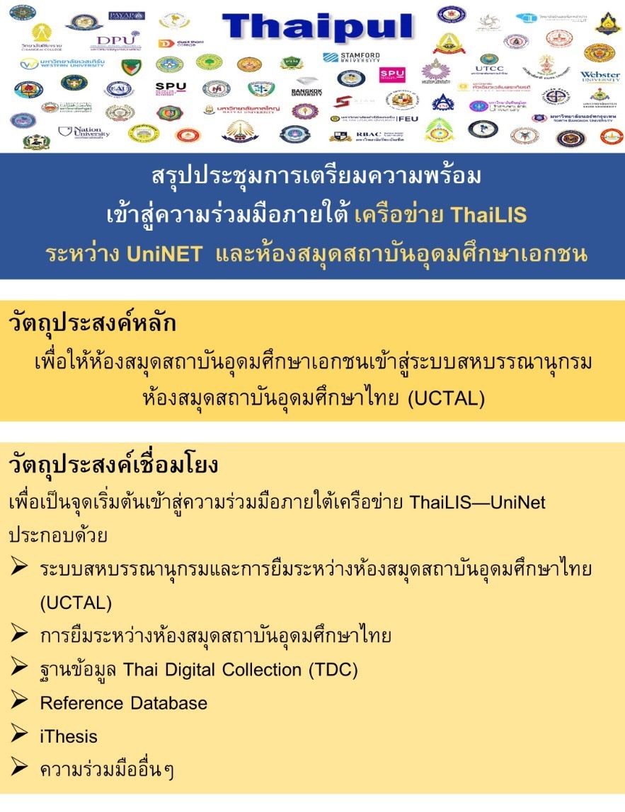 ความร่วมมือกับเครือข่าย ThaiLIS ในการใช้ฐานข้อมูลสหบรรณานุกรมในระบบ UCTAL