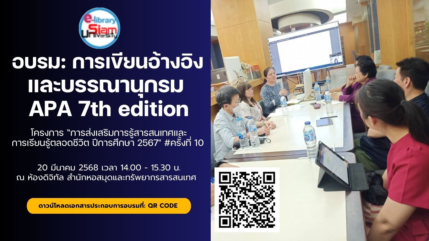 ดาวน์โหลดเอกสารการอบรม (PDF): การเขียนอ้างอิง และบรรณานุกรม APA 7th edition |