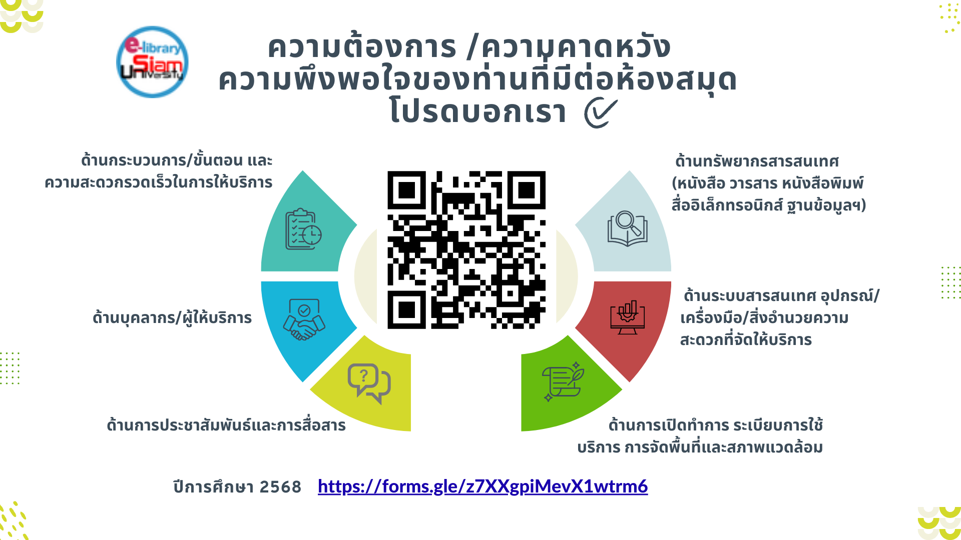 แบบสอบถามความต้องการและความพึงพอใจของผู้รับบริการสำนักหอสมุดฯ ประจำปีการศึกษา 2568