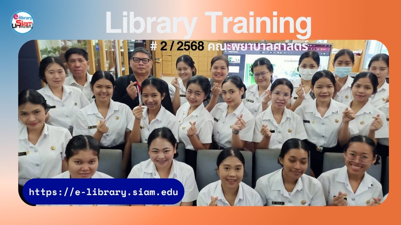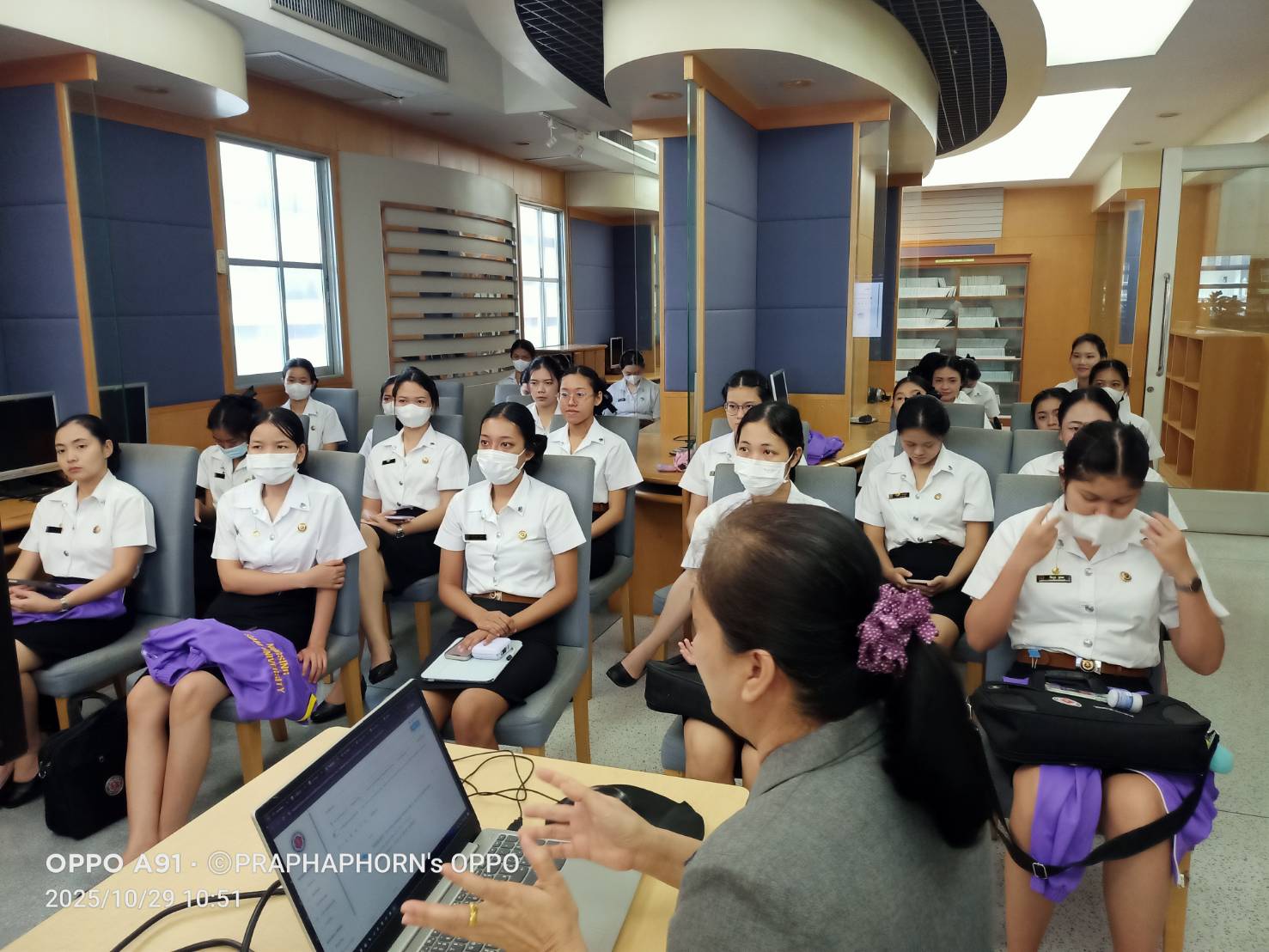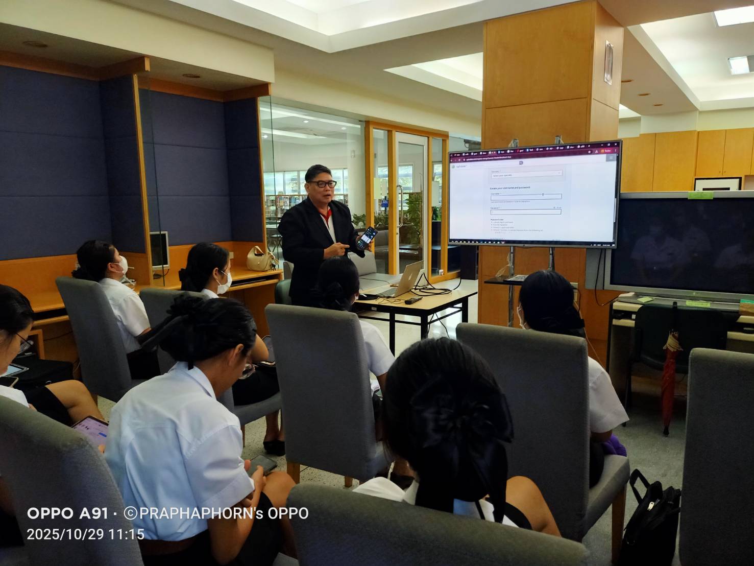 - ครั้งที่ 2/2568 วันพุธที่ 29 ตุลาคม 2568 เวลา 10.00 – 12.00 น. ณ ห้องดิจิทัล สำนักหอสมุดฯ วิทยากรโดย ดร.คมเดช บุญประเสริฐ และ พี่พรรณี จิวพุทธิธรรม จัดอบรมให้กับนักศึกษาคณะพยาบาลศาสตร์